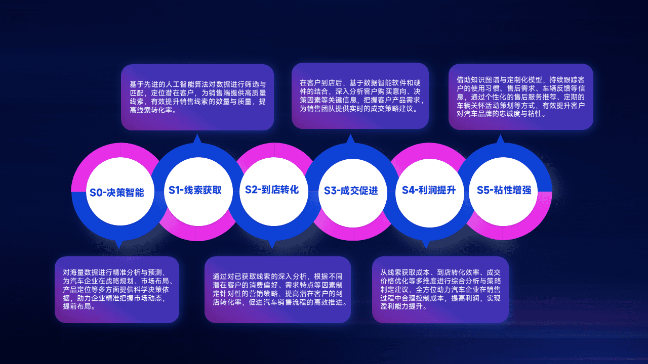 通过拓宽潜在客户来源、、优化线索分配并提高到店转化率,,,以增强销售效率。。同时,,利用线索数据不断优化分析模型,,,有效提升转化率,,扩大营销影响力。。